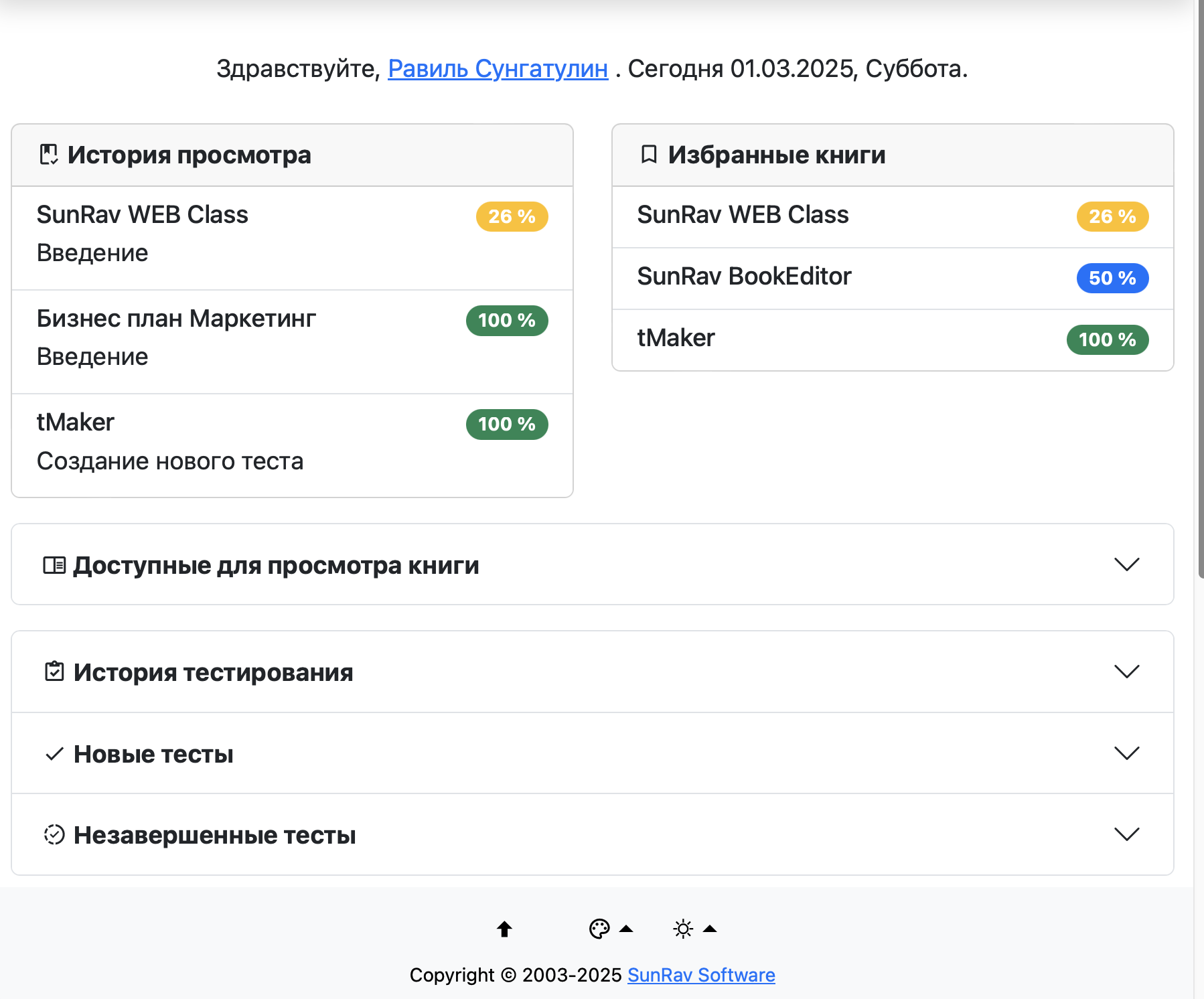 - Имя пользователя и текущая дата.