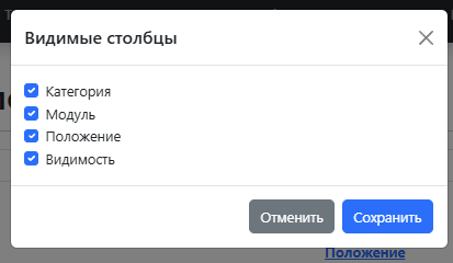 Выбор столбцов для показа данных осуществляется с помощью кнопки на панели таблицы. В появившемся диалоге выберите столбцы, которые нужно показать и нажмите кнопку Сохранить (или кнопку Отменить чтобы отменить выбор).